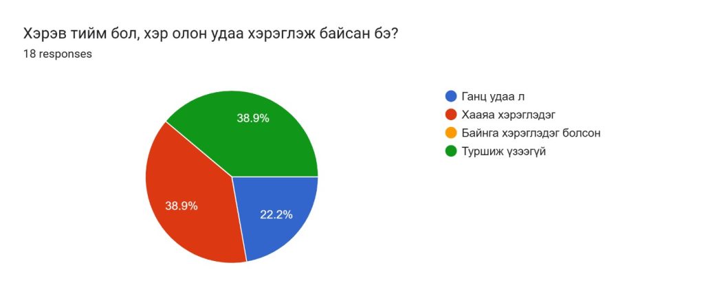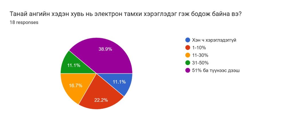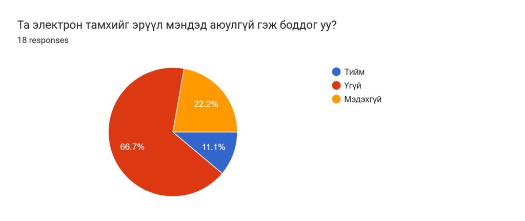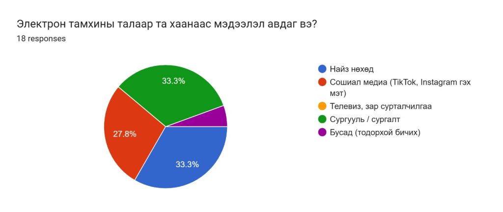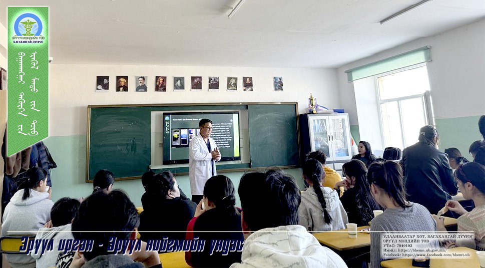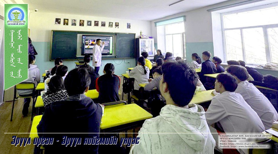 Багахангай дүүргийн 1-р хороотой хамтран дүүргийн ерөнхий боловсролын 91-р дунд сургуулийн ахлах ангийн сурагчдад “Электрон тамхины хор уршиг” сэдвээр эрүүл мэндийн сургалтыг 2025 оны 11 дүгээр сарын 11-ний өдөр зохион байгуулсан. Тус сургалтанд ахлах ангийн 39 хүүхдэд хамрагдсан. Сургалтаар электрон тамхины хор уршгийн мэдээлэл хүргэх, өсвөр насны хүүхдүүдийн дунд асуулт-хариулт, зөвлөгөө өгөх ярилцлагыг зохион байгуулж сургалтын төгсгөлд судалгааг “google from” платформ ашиглан QR код гар утсаараа уншуулан нийт 18 хүүхэд нэрээ нууцлан оролцов.