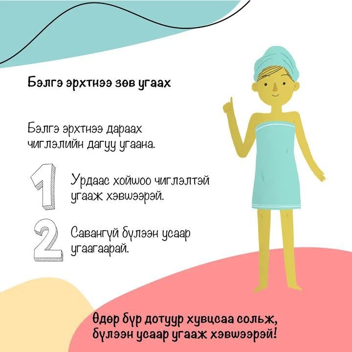 - Охидын хувийн ариун цэвэр, ариун цэврийн хэрэглэл зөв хэрэглэх алхам